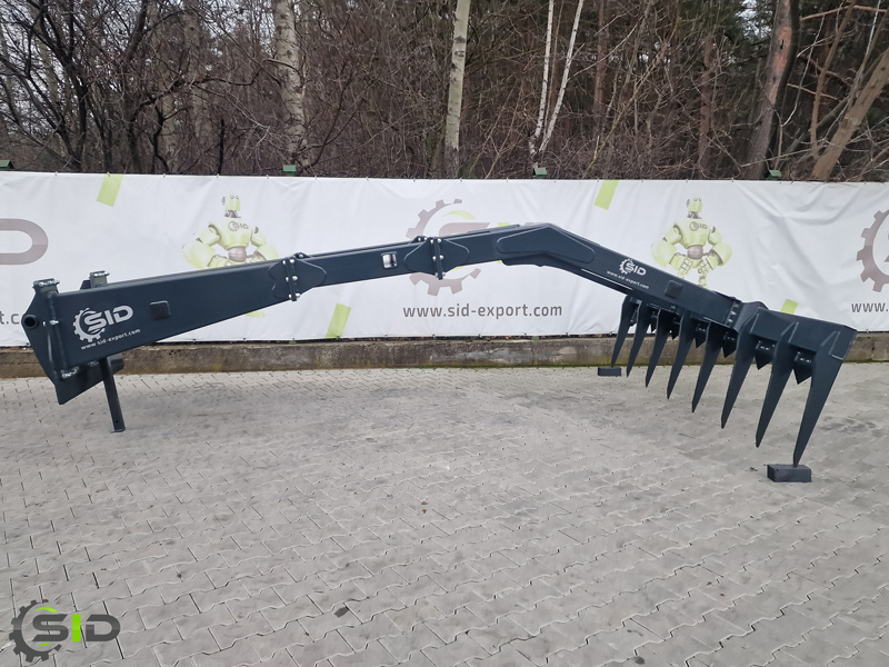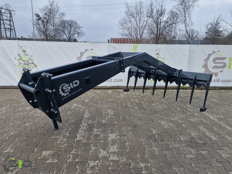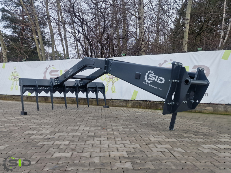 Grabie do pryzm imponują wyjątkowo dużymi rozmiarami, stabilną i wytrzymałą konstrukcją. Osprzęt ten posiada noże tnące zamontowane na całej szerokości grabi, które umożliwiają cięcie pryzmy i zgrabienie jej większej ilości. Rozdrobnioną kiszonkę można następnie załadować łyżką objętościową, którą posiadamy także w naszej ofercie. Grabie są dostępne w różnych szerokościach. Długość osprzętu to 3,85m a dzięki przedłużce grabie zyskają jeszcze 1 metr. Istnieje też możliwość zamiany grabi na spych. Maszyna jest standardowo wyposażona w nogę podporową. Jesteśmy w stanie wyprodukować każde mocowanie wedle potrzeb klienta.