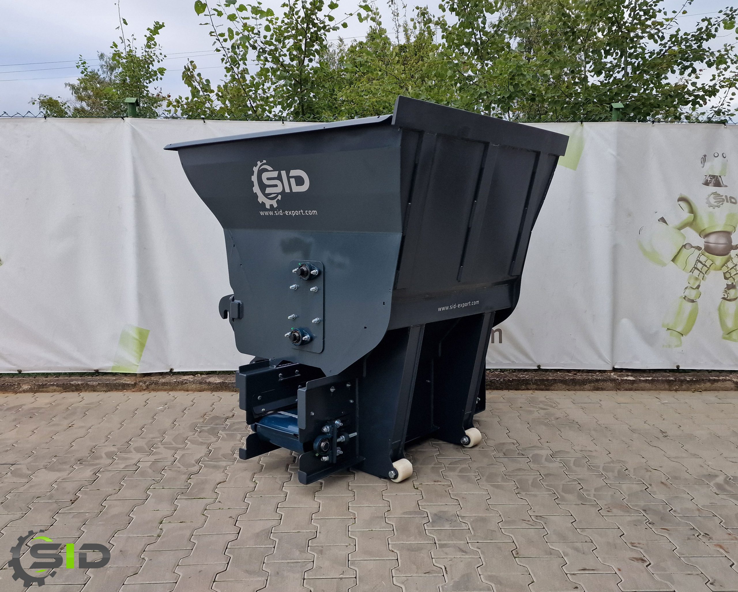 Rozściełacz taśmowy można wykorzystać także w ogrodnictwie do podsypki trocinami, zrębkami, a także do rozściełania kompostu. Pojemnik ma specjalnie zaprojektowany kształt dzięki czemu materiał nabierany i dozowany nie zawiesza się.