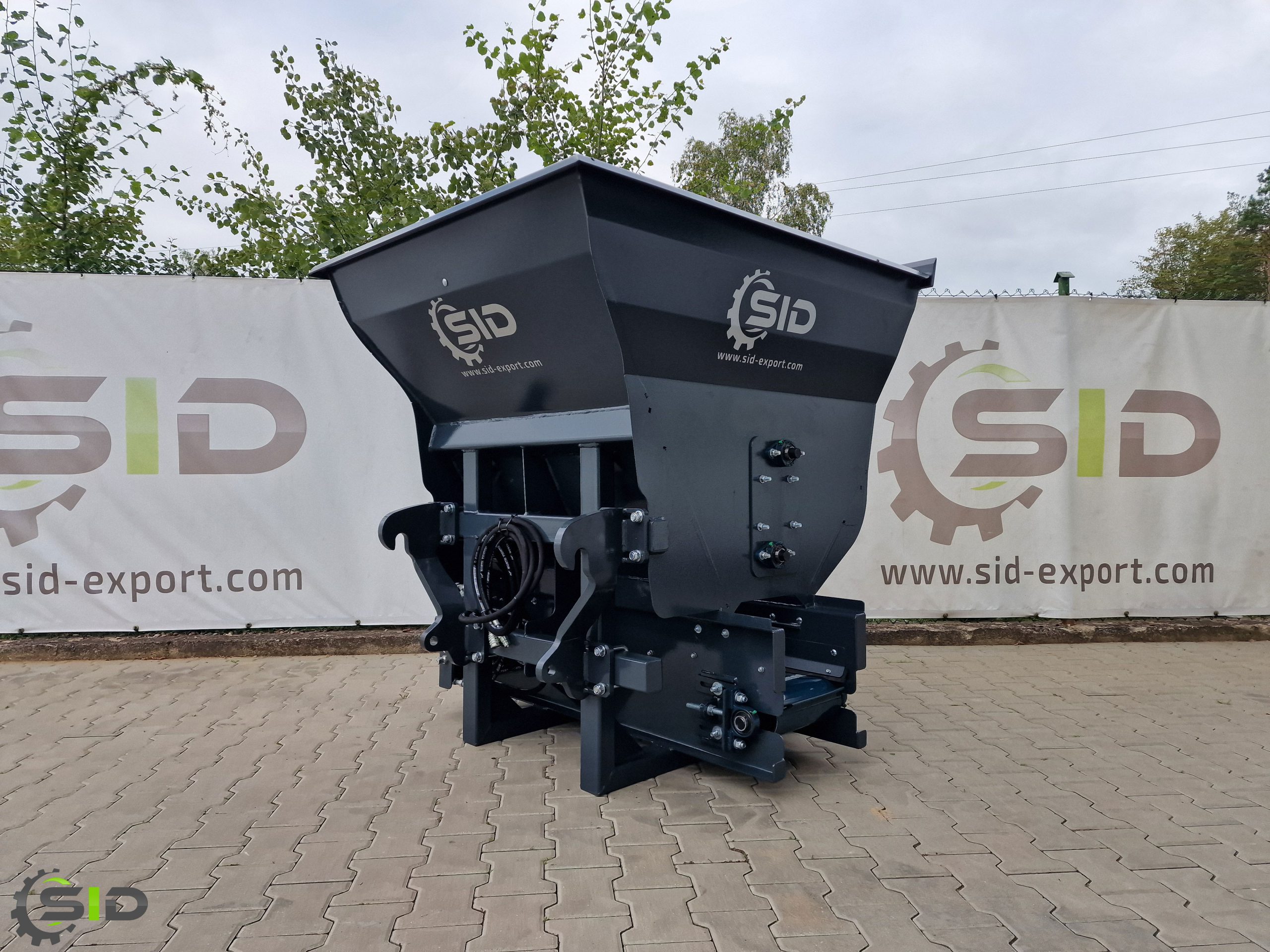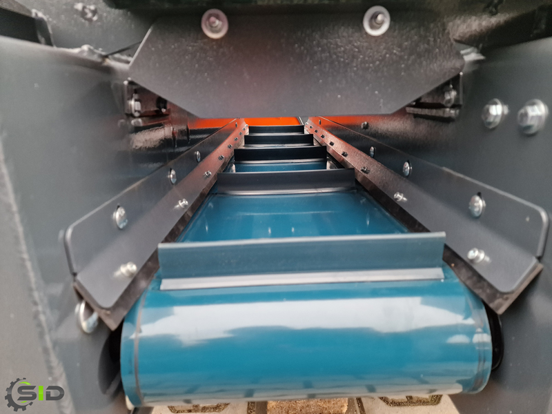 Na spodzie łyżki zainstalowany dozownik taśmowy z zabierakami do lepszego wyrzutu ściółki i równomiernego rozrzutu na podłoże.