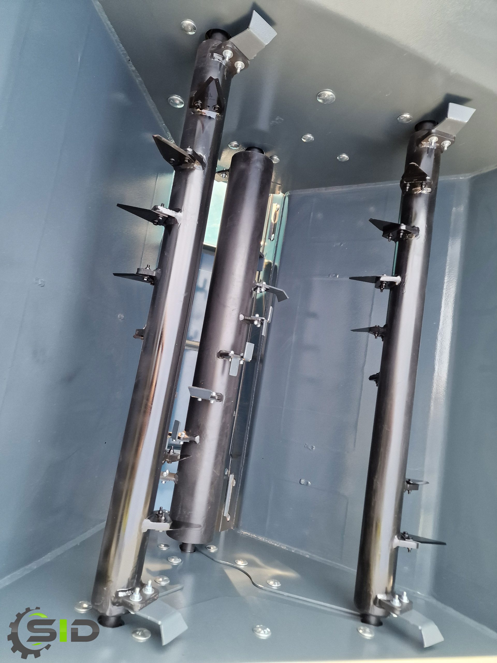 Wewnątrz zastosowano walce do dozowania materiału. Ilość walców zależne od pojemności.